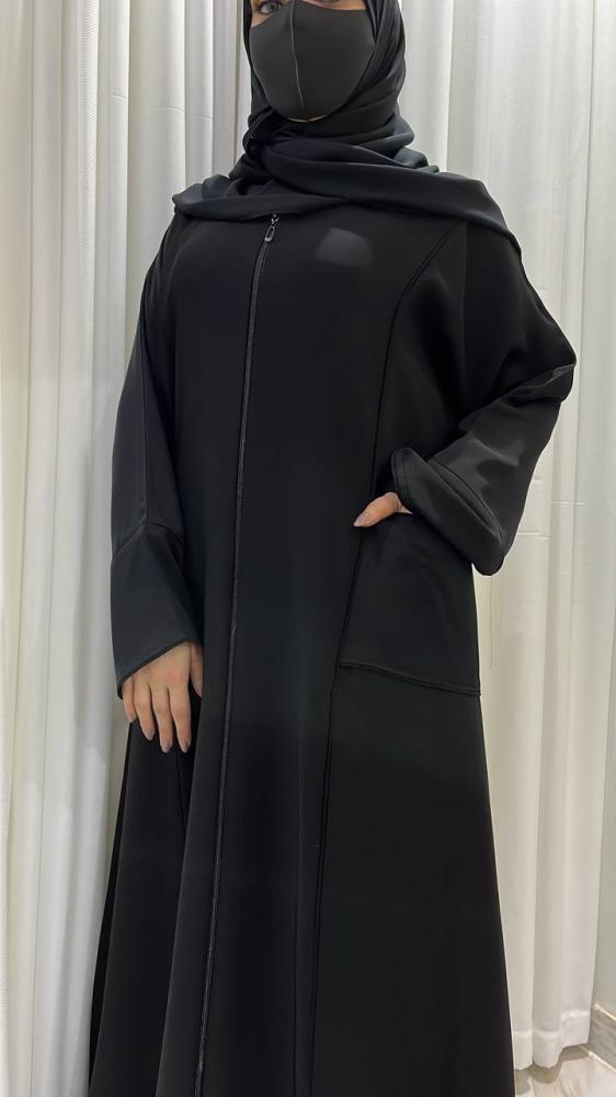 1-عباية بسحاب و جيوب (قماش انترنت)